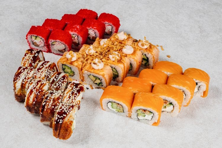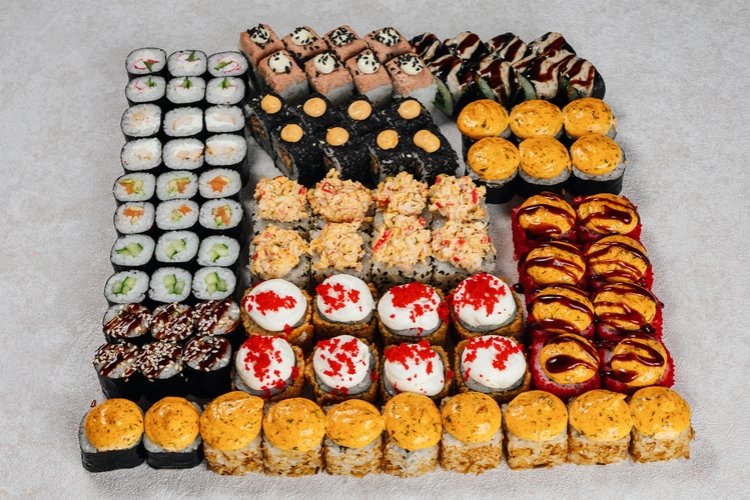 Гигант Макс — это огромный набор роллов, наполненный разнообразием вкусов и текстур. Он идеально подходит для большой компании или настоящих любителей роллов, потому что каждому найдется что выбрать и попробовать!