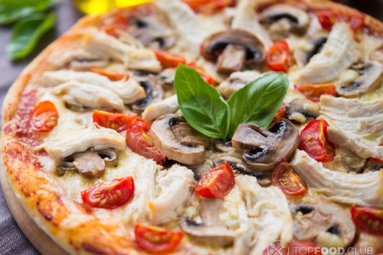 Римская пицца с грибами и курицей — тонкое хрустящее тесто, покрытое нежными кусочками курицы и ароматными грибами, дополненное свежими травами и мягким соусом. Легкая и насыщенная вкусами, идеально подходит для тех, кто ценит баланс между мясом и овощами!